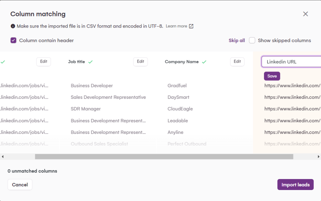 Lead Import on La Growth Machine: