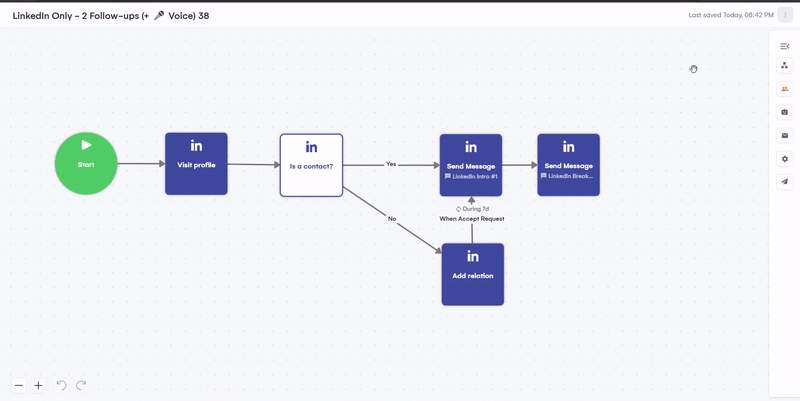 We’ll independently enrich all your leads by finding emails, Twitter handles, and additional information about the company. This is done automatically at the start of every campaign through a LinkedIn profile visit.