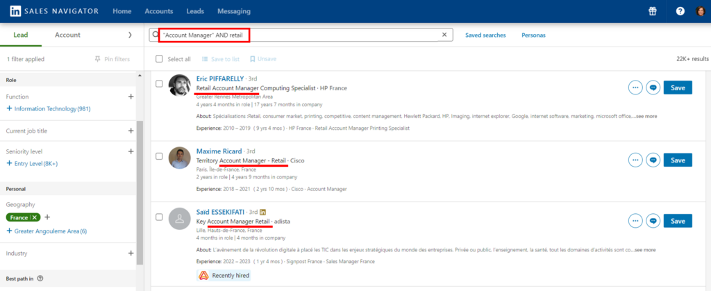 If you want to leverage the full potential of LinkedIn Sales Nav, you need to learn how to use these search operators effectively.