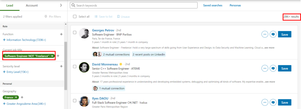 That said, this approach can be used in all LinkedIn searches; Basic, Recruiter, Sales Navigator, etc.