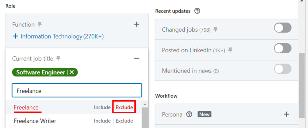 Now look what happens when I add a simple “NOT Freelance”: