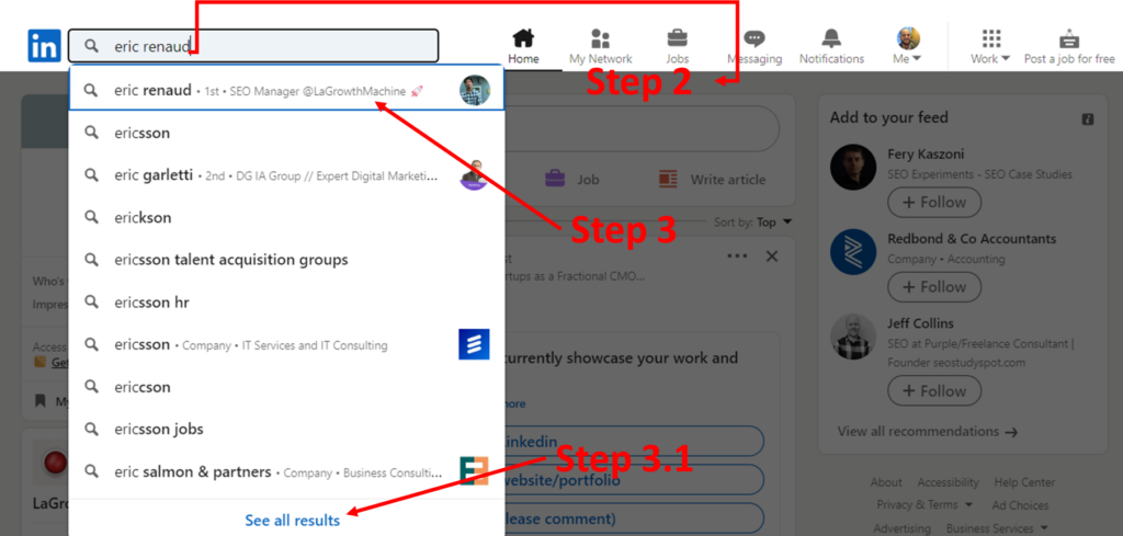 Step 3.1: Or click “See all results” for a complete list of matching profiles