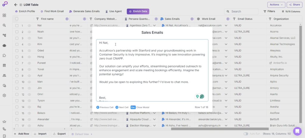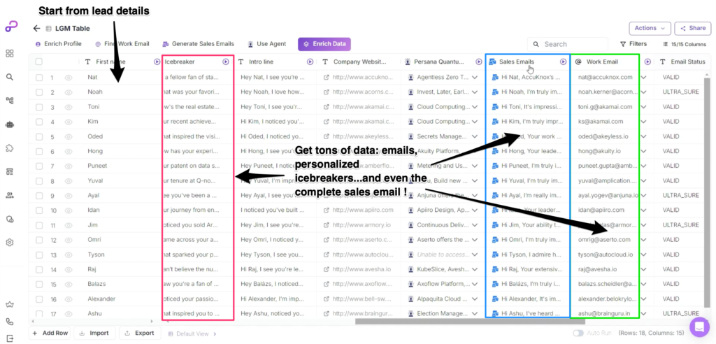 Imagine being able to send highly personalized messages to each of your prospects without spending hours on LinkedIn stalking their profiles. Persana.ai’s AI-powered tools scrape valuable data from LinkedIn profiles to create unique icebreakers and tailored emails for every contact.