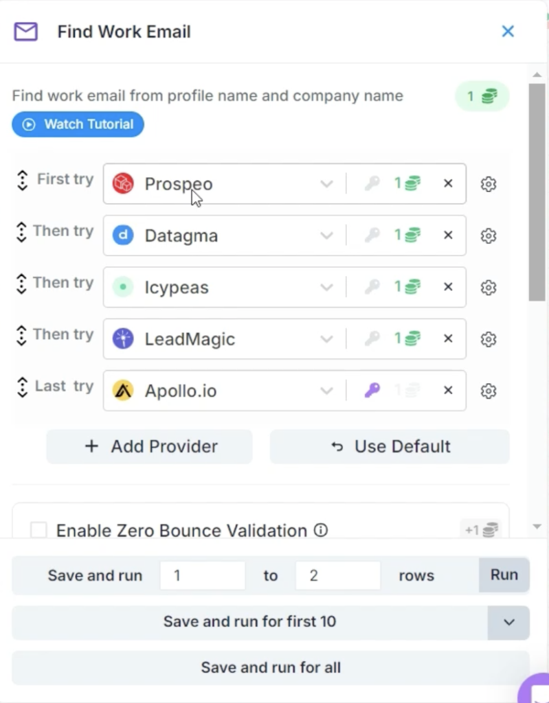 - Choose your preferred data providers (you can arrange them in a waterfall style).