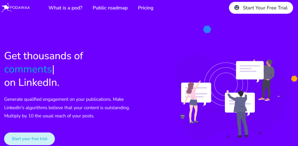 Se você está procurando uma extensão do Chrome, Lempod e Podawaa são duas que você pode considerar. A afirmação da Lempod de “10x Visualizações de Posts no LinkedIn com Curtidas de Outros Criadores de Conteúdo do LinkedIn” retrata uma rede mais ativa em seus posts. Você pode escolher, criar ou participar de diferentes ‘pods de engajamento’ onde todos podem postar comentários simples ou curtidas.