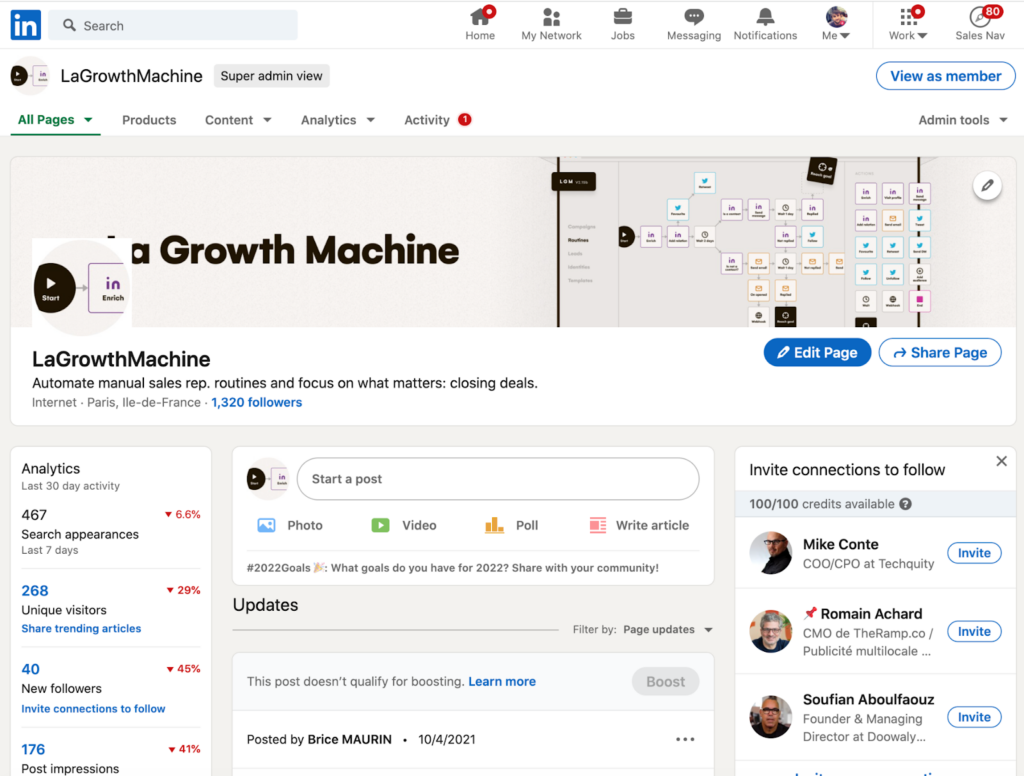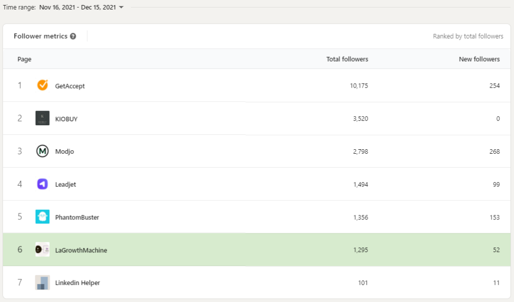 - LaGrowthMachine — Nossa ferramenta é construída para ajudá-lo a fechar mais negócios. Por exemplo, você pode importar seus seguidores do LinkedIn (ou os de sua empresa) toda semana para enviar mensagens personalizadas e iniciar uma conversa com eles.