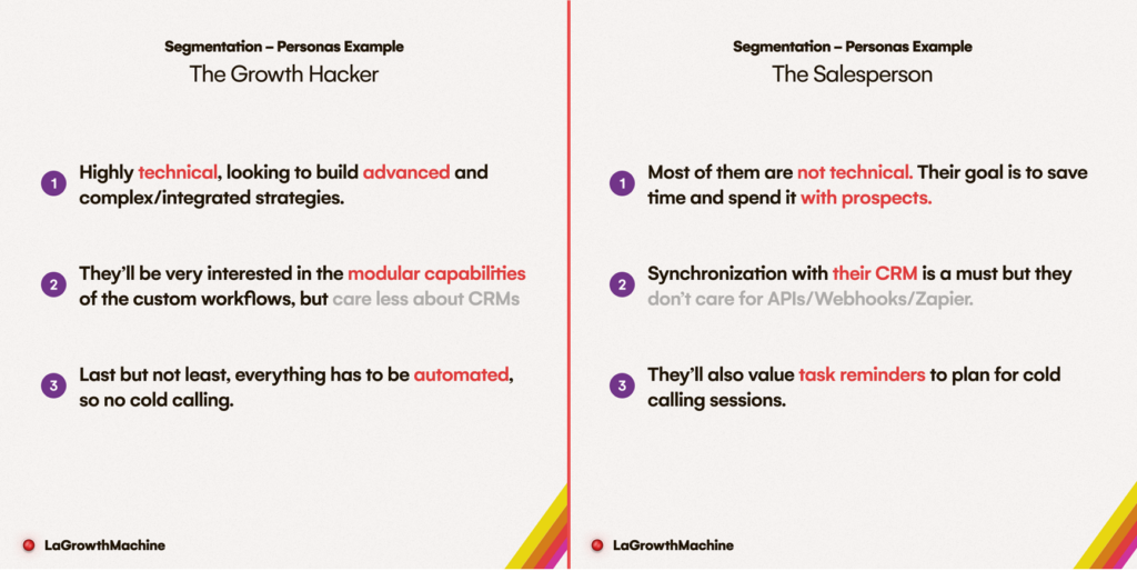 - Enviar mensagens e ofertas personalizadas e relevantes para cada grupo usando ferramentas e plataformas, como software de marketing por e-mail, software CRM ou La Growth Machine. Isso ajuda você a nutrir seus leads, fornecendo-lhes valor, educação e soluções que correspondam ao estágio da jornada do comprador.