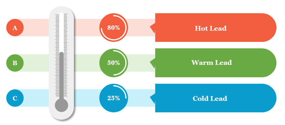 É nesta fase que você normalmente ouvirá falar de coisas como leads frios, quentes ou mornos. Estes são os três níveis que qualificam um lead de vendas. Você provavelmente encontrará diferentes interpretações desses tipos de leads, dependendo do tamanho da sua empresa, do produto ou serviço que você oferece, etc.