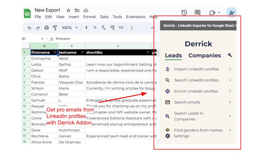 Obter endereços de e-mail do LinkedIn usando um complemento do Google Sheet