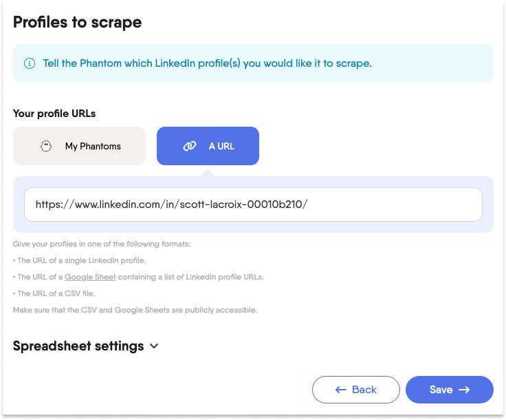 3. Usando uma ferramenta de terceiros: como Phantombuster ou Kaspr. Você precisa inserir o URL do LinkedIn do seu lead e ele extrairá o endereço de e-mail do LinkedIn.