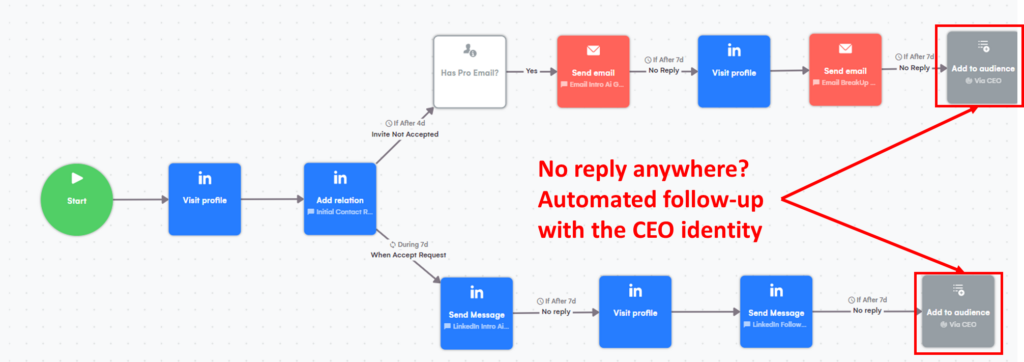 Esta estratégia realmente pega seus leads de surpresa, pois ninguém espera ser contatado pelo CEO ou pelo Head do departamento! E a melhor parte? É totalmente automatizável!
