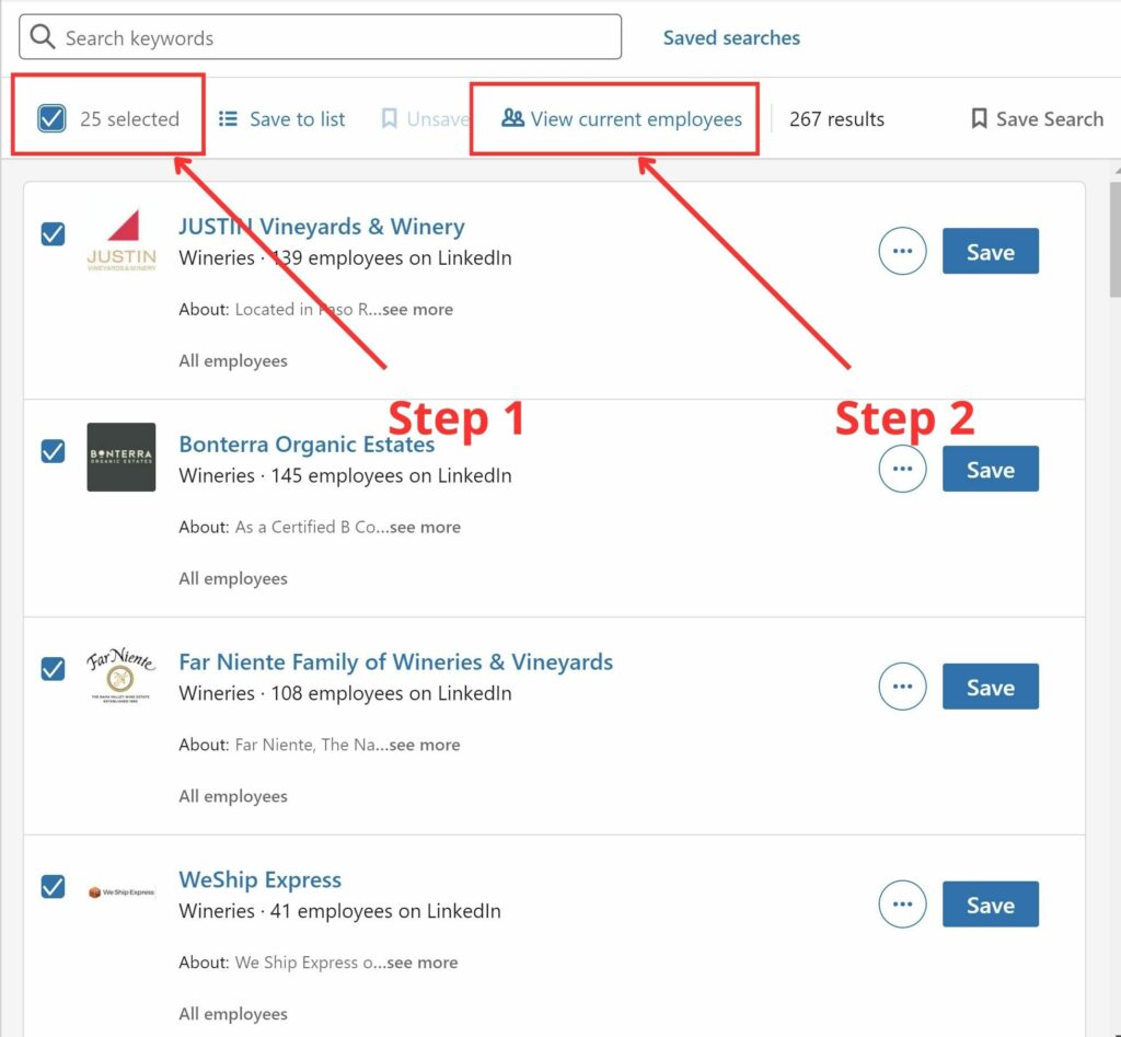 A questão aqui é que o LinkedIn só permite exportar contas/leads de 25 em 25. Isso significa que se você tiver 1000 empresas para selecionar, esse processo pode demorar.