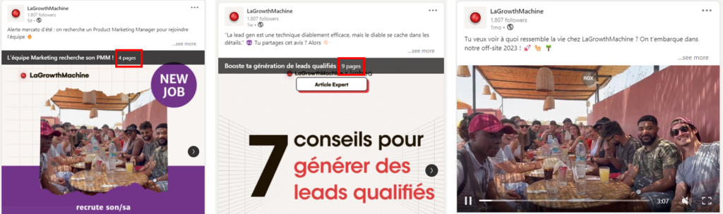 - Publicidade de Artigo: O segundo é para promover um guia completo sobre ideias de geração de leads (em francês).