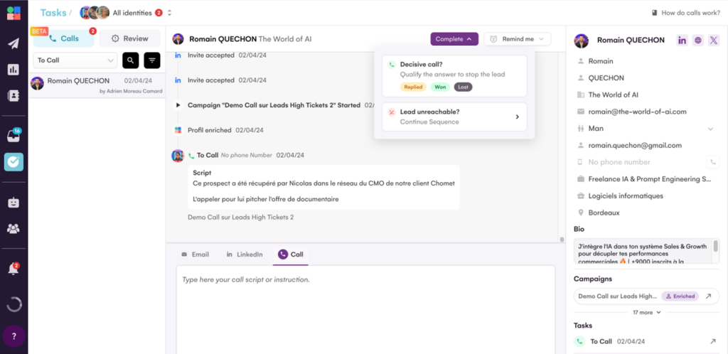 Com a La Growth Machine, você pode acessar seu script a qualquer momento; seja antes, durante ou depois da chamada 😉
