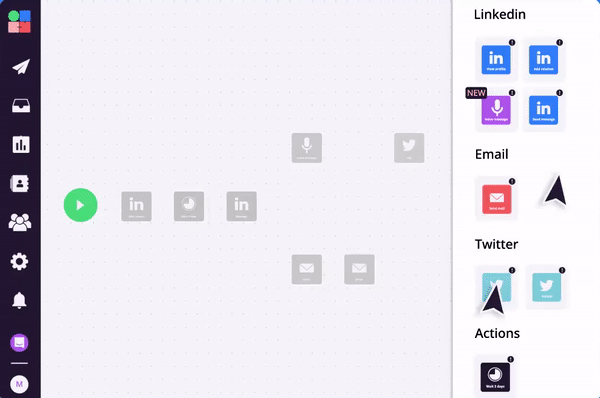 - Lance Campanhas: Para cada hipótese, crie uma campanha distinta. Você pode usar nosso próprio La Growth Machine para isso. Brinque com as personas, o canal utilizado e diferentes textos.