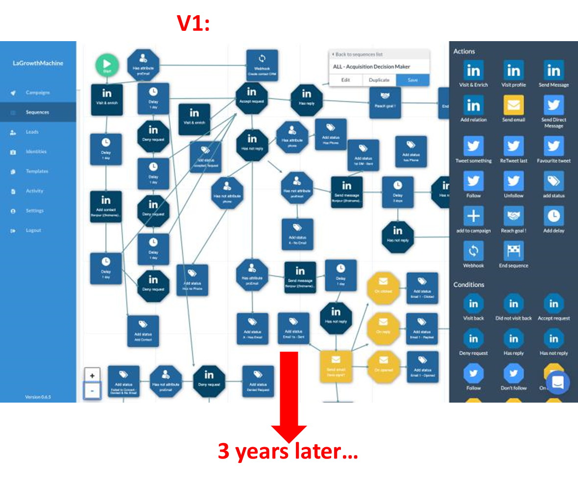 Se você olhar para a V0 da La Growth Machine, era apenas um script, e depois tinha uma interface horrível.