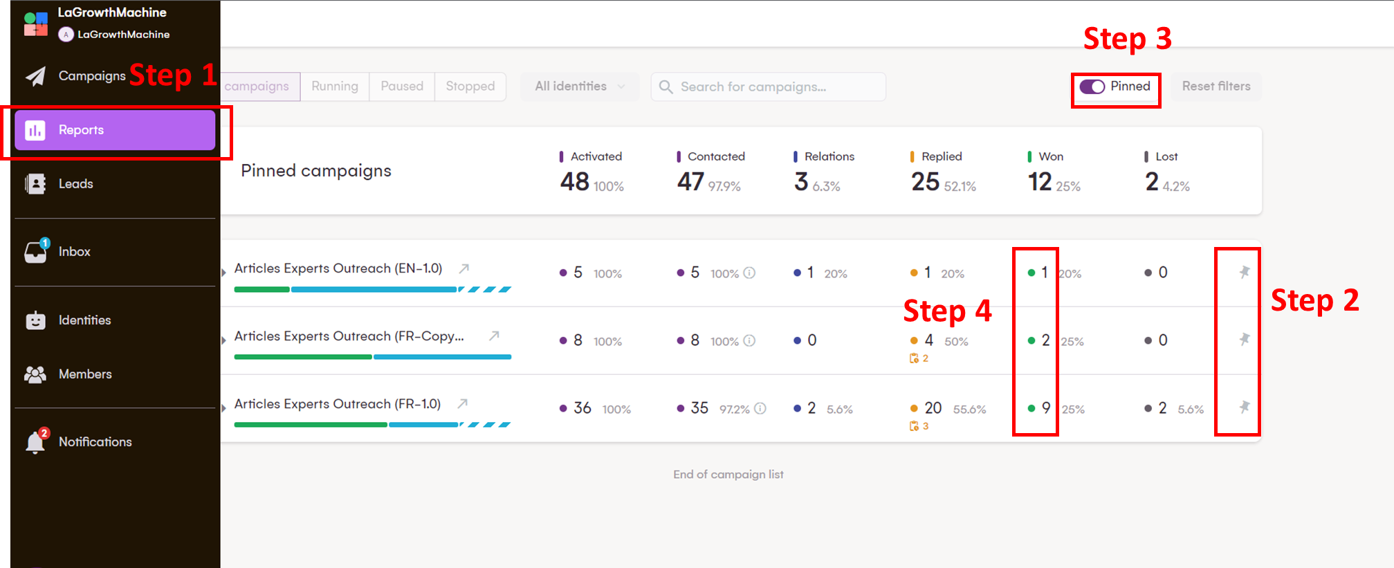 - Passo 4: Como você pode qualificar leads no LGM, simplesmente compare a seção “Ganhos”.