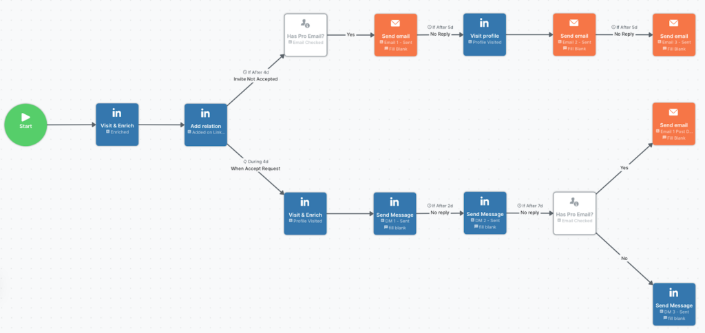- Automate a suite of emails and LinkedIn Messages according to your copywriting