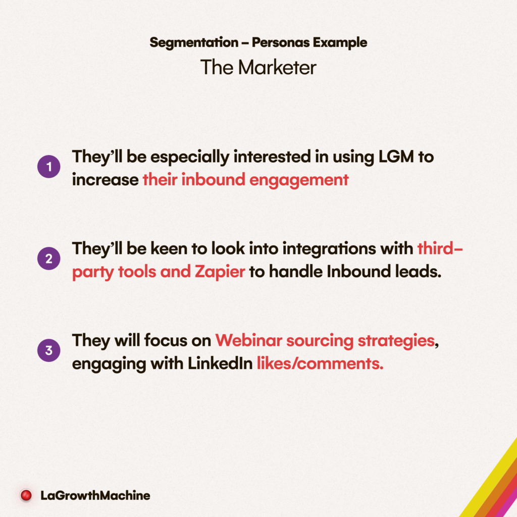 We could contact them all with the same sequence using generic copywriting. Yet, even for something as straightforward as LaGrowthMachine, that is not as simple.