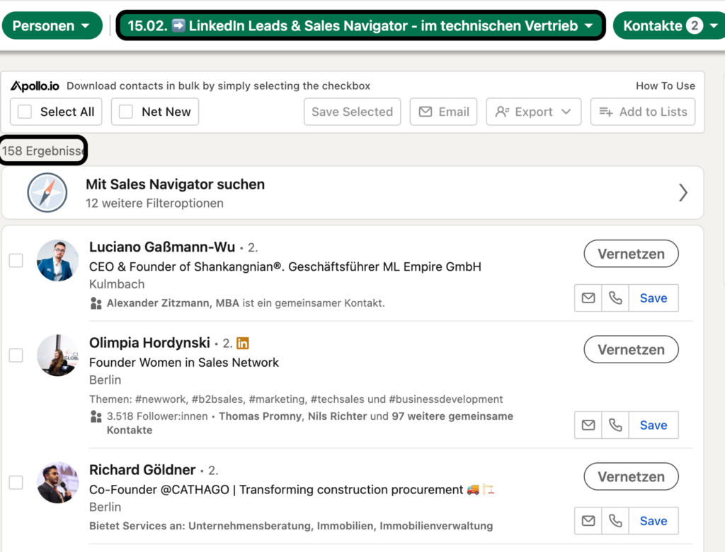 With Tools like Apollo.io or CUFinder, you are now able to get from Company Names to Domains to Employees within that company and their contact information. Your goal is to build a list that contains all the necessary information for personalized outreach.